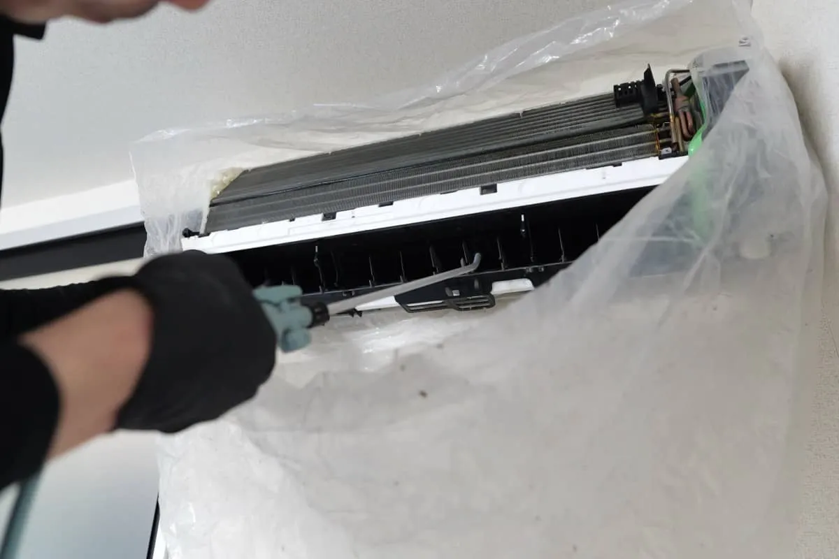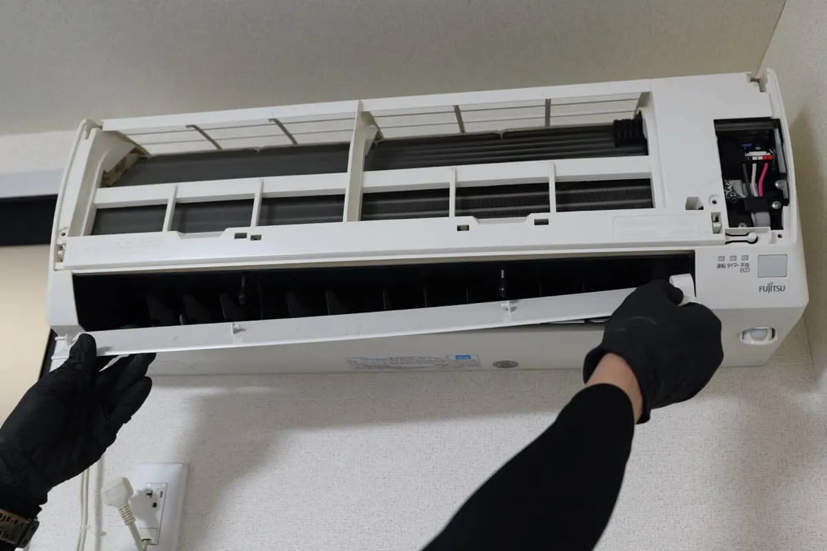 複雑な構造を持つお掃除機能付きエアコンは、表面の清掃だけでは内部の汚れを十分に除去できない場合がございます。宮城にて、外装カバーやフィルターはもちろん、内部ユニットに至るまで丁寧に分解し、細部に入り込んだホコリやカビを徹底的に洗い流します。自動清掃機能が備わっていても、ダストボックス周辺や熱交換器の奥には汚れが残りやすいため、専用の機材と洗浄方法を用いて隅々までクリーニングを行っています。